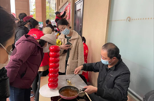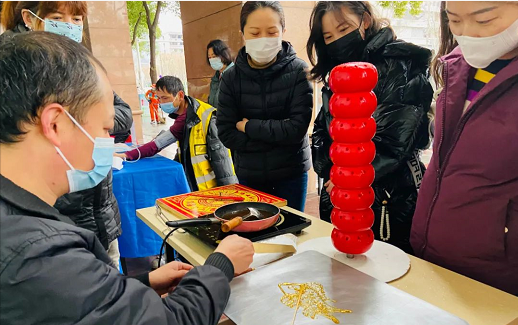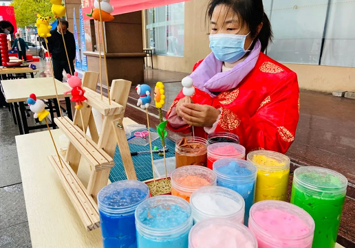 “爷爷快来,帮我转一条‘龙’!”街坊李爷爷被孙子豆豆拉着走向“转糖”师傅的摊位,只见师傅熟练的舀了起熬好的糖浆创作起来,不一会儿一条栩栩如生的龙引入眼帘,没走两步,豆豆又被隔壁摊位老师傅手里的“孙悟空”糖人吸引了。李爷爷告诉志愿者说:“在科技发达社会进步的同时不忘传播科普民俗文化,你们做得很好啊!”