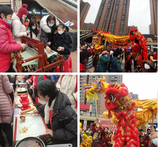 活动现场居民踊跃参加,现场气氛热烈喜庆。活动中不仅有喜闻乐见的字谜、妙趣横生的俗语谜、成语谜供大家竞猜,还有传统舞龙舞狮表演、冰糖葫芦制作、糖画制作、传统纺织体验等等,内容丰富,形式多样。