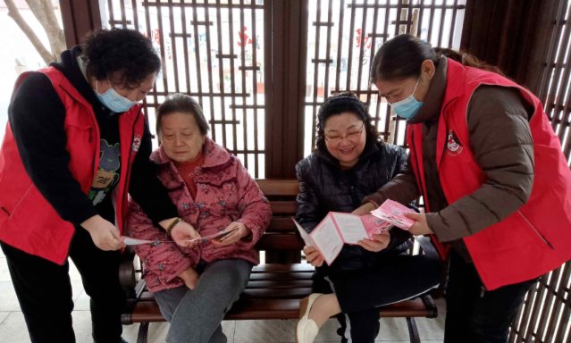 社区巾帼志愿服务队的志愿者们积极向群众发放《妇女权益保障法》《反家庭暴力法》《家庭教育促进法》《未成年人保护法》宣传册,正确引导广大妇女群众运用法律维护自身合法权益,号召大家共同为构建幸福家庭、和谐社会贡献力量。
