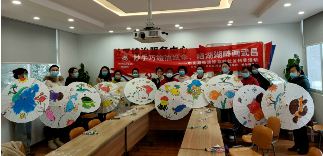 社区邀请天佑医院家邻志愿巡湖队和社区家邻志愿巡湖队的15名巾帼志愿者在社区活动室进行了“庆三八彩绘油纸伞活动”。在老师的精心指导下,巾帼志愿者们拿起画笔,灵动的双手游走在伞面与颜料之间,轻轻点缀,细细在油纸伞上描绘出晒湖岸绿水清的美景。一把把尽显中华文化之美的油纸伞为巾帼志愿者们巡湖提供了一抹清凉。让她们充分感受到了中华非遗文化的魅力。