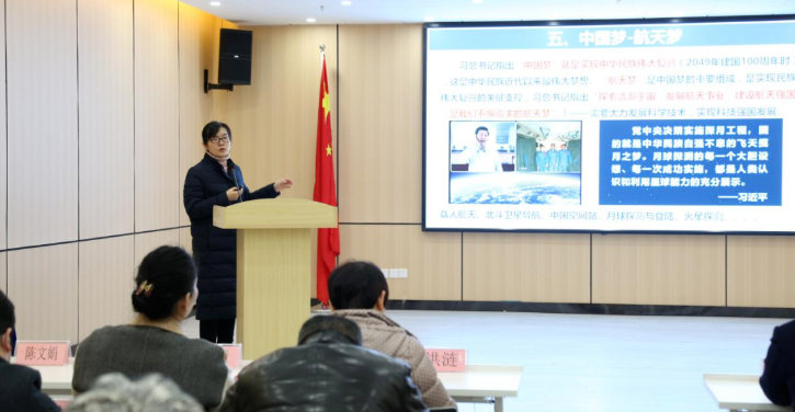 启动仪式后,陈文娟副教授介绍了航天探索历程与发展方向,指出了探月工程在航天探索征程中的重要地位,阐释了中国航天的古代传统文化元素,并结合“嫦娥-玉兔神话”重点科普了我国探月工程发展的伟大成就。陈教授生动有趣的演讲,博得了现场观众的热烈掌声。
