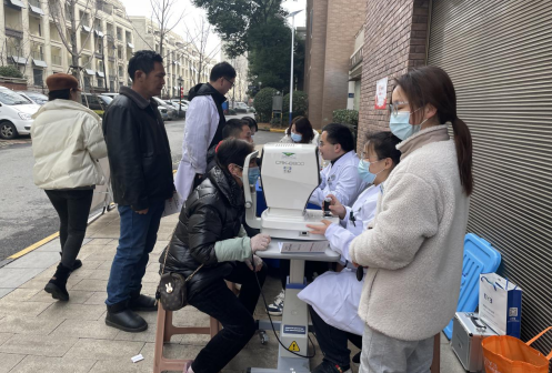 兴龙社区和物业的志愿者,跟随刘博士团队为居民进行了免费义诊。医生们结合临床经验,根据视力仪器检测结果,为每位前来咨询的群众进行了现场答疑解惑,并给予了一对一的合理用眼健康宣教。