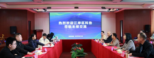 3月14日上午,武汉市江岸区科协党组书记、主席罗玉清,党组成员、二级调研员彭涛,党组成员、三级调研员冯崇坚,区科协科普部负责人易娟,科普部许嘉康,江岸区科技馆江倩到武汉科技报交流考察,并就进一步挖深挖实江岸区科协特色亮点工作,打造特色品牌展开深度交流。武汉科技报党支部书记、总经理陈金枝率领班子成员及中层以上干部参加座谈交流。