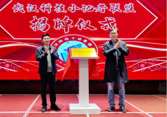 市教育局副局长、党委委员李定君,市科协党组成员、副主席张若光宣布“武汉科技小记者联盟”成立,并为其揭牌。