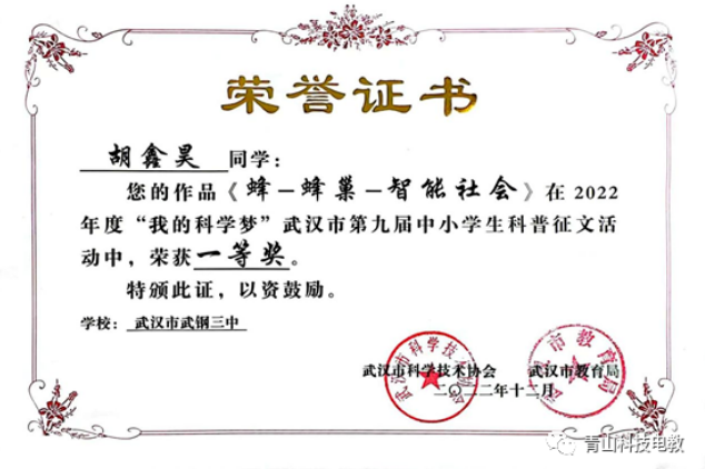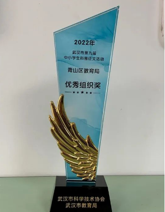在本次科普征文活动中,青山区共选送作品1246篇,来自武汉市第四十九中学、武钢三中、钢花小学三篇作品获武汉市一等奖,青山区教育局、青山区科协、武汉市第49高中被评为优秀组织单位,其中武汉市第49高中还被授予首批武汉科技小记者站。