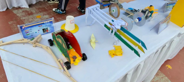 本次科普节暨创客节现场诸多展位中,既有同学们自己的小制作、小发明,也有来自武汉乐造科技有限公司、中南民族大学、江夏区气象局的机械设计、人工智能、VR绘画、激光雕刻、3D打印、智能模型等现代科技展示秀。孩子们观摩现场好奇的目光,像是在找寻打开科学大门的钥匙,异彩纷呈的展示秀,给孩子们开启了新世界的大门,在那里面,孩子们可以进入一个科技的国度,享受趣味科学,畅想科技美梦。
