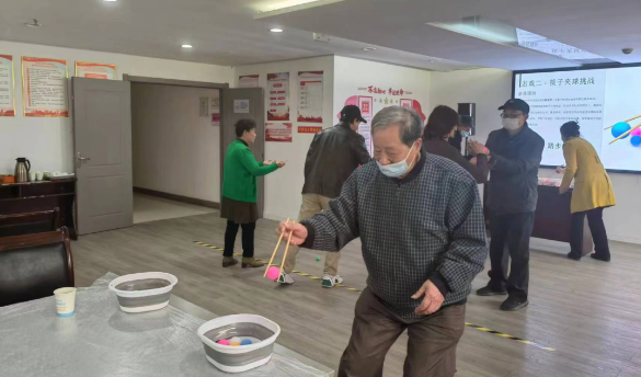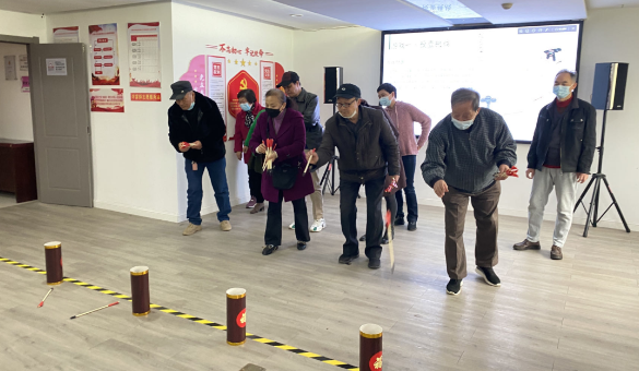 在随后的全民健身互动环节共分为三个游戏,分别是非遗投壶挑战、筷子传球挑战、蒙眼原地踏步挑战。这些活动不但讲究眼力,耐力,还拼速度和技巧,可谓精彩纷呈,乐趣无穷。现场参与的居民通过分组比赛,赢得积分,并兑换惊喜奖品。游戏虽简单,但难度却不小,不少居民屡战屡败,屡败屡战。不少居民兴奋地表示“这些游戏都太好玩了,看着简单,但是要拿到奖品还有点难度”。