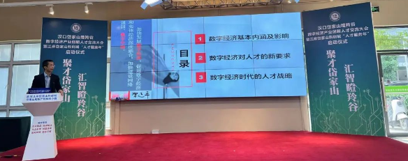 活动上,邀请到武汉大学经济与管理学院工商管理系副教授、硕士生导师温兴琦以《数字经济产业与企业人才战略》为主题,从顶层设计规划,优化数字人才发展环境,打造数字人才强企,发挥主体作用,培育更多“数字工匠”做了分享。