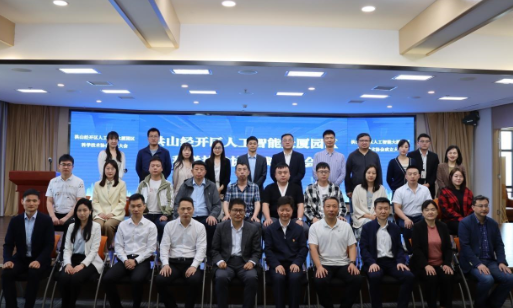 尤庆亮、龚秀成、戴意涛、蔡劲松、张琥、喻峰为洪山经开区人工智能大厦园区科协揭牌