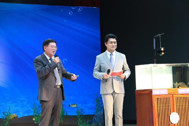 活动现场,在“致敬院士”环节,大家共同朗诵了由桂建芳创作的诗词《水调歌头·水经新注》。