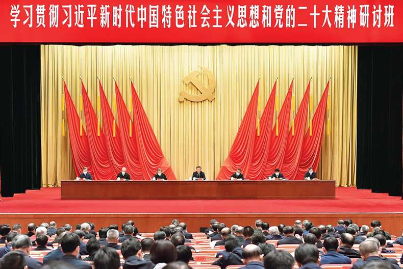 2023年2月7日,新进中央委员会的委员、候补委员和省部级主要领导干部学习贯彻习近平新时代中国特色社会主义思想和党的二十大精神研讨班在中央党校(国家行政学院)开班。中共中央总书记、国家主席、中央军委主席习近平在开班式上发表重要讲话。李强、赵乐际、王沪宁、蔡奇、丁薛祥、李希等出席开班式