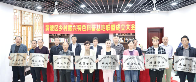 会议结束后,区科协一行为“黄陂区乡村振兴特色科普基地联盟”揭牌,为21家联盟成员单位授牌。