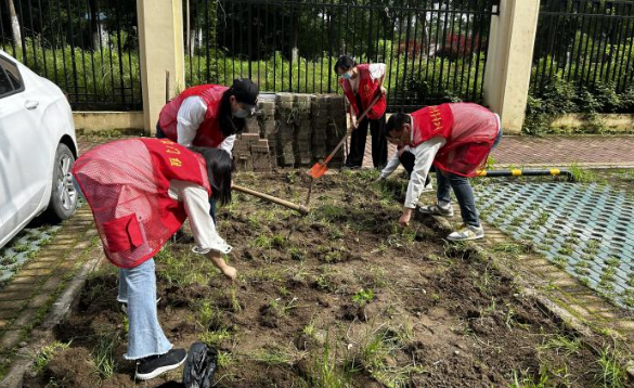 2023年5月22日下午,社区干部、区绿化服务队的下沉党员、科技志愿者干劲十足,手拿镐、铁锹、钉耙等工具,有的清理垃圾,有的拾捡杂草,有的翻地铲土,有的倒沙倒屑、有的平整土地,现场一片热火朝天的氛围,经过大家的辛勤劳作,一会儿功夫就将元兴苑小区一处闲置空地规整成“科普小花园”。社区将同步面向辖区居民招募热爱自然、热爱劳动、有团队协作精神的“园丁”科技志愿者和热爱并有一定的培育、绿化、园艺技能“花匠”小达人,并由居民自己命名认领的一块花卉科普园地,以沉浸式种植体验撬动居民自治的积极性,旨在更好地提升居民参与度、增强社区凝聚力。