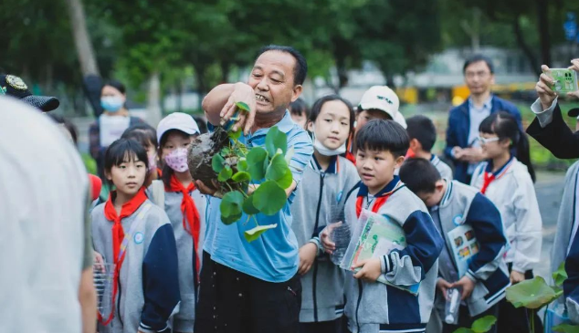 一堂德育、智育、美育皆备,内涵丰富,人景和乐的自然通识课应该是什么样?园科院携手钢都小学共同开展的“荷花缸里探乾坤”科普研学之旅告诉你答案。5月23日,30余名小学生走进园科院,探秘荷花缸里的生态世界,学习生态系统的构成、群落、平衡等相关知识,感受荷花之美,接受生态文明启迪。
