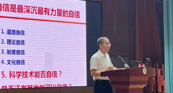 “大家是不是都觉得纺织品不就是衣服吗?有什么科技可言?”徐卫林院士以一个幽默的提问开启课程。徐卫林院士认为,纺织进步史就是一部中国发展史。从中国的道路自信、理论自信、制度自信、文化自信,到古代的造字法、诗词创作,再到世界文明史、现代中国纺织工业现状……徐卫林院士运用大量的图文数据和视频向同学们展示了纺织科技对历史发展的影响。