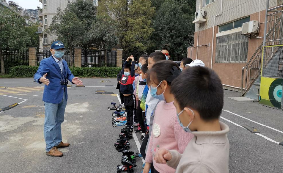 “比比看谁的车速快?”在武昌区南湖第二小学的车创空间,车模社团的几个小朋友刚组装完车辆模型,就开始在一旁的车辆竞速赛道趁热打铁检验起了自己的制作成果。小小的活动空间,不仅融合了有关车辆的中华传统文化和时事政策墙绘、摆满了社团近年来获得的荣誉,还设置了一大块场地供孩子们遥控车辆比赛。“2012年南湖第二小学的车模社团才22人,现在车模有230人、航模有150人,室外车模训练场3个、室内车海模教室3个。”尹涛感慨。