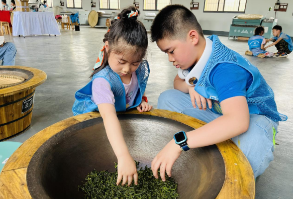活动当天,金都蓝湾社区少年儿童40余人来到茶场,背上小背篓来到山坡上的茶林,在茶田间穿梭,听着老师讲授茶文化知识,与茶农学习采摘茶叶的技巧,大家按照“一芽一叶”的要领采摘茶叶,或轻拔,或瞬提,小心翼翼地把嫩叶放入篮中,满山欢声笑语间,勾勒出一幅人与自然和谐共生的魅力画卷。