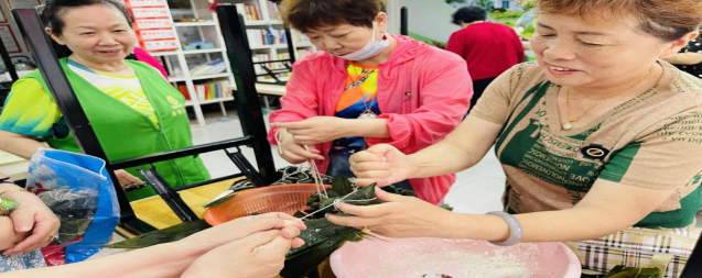 随后包粽子的环节开始啦!在粽叶飘香的氛围中,志愿者把提前泡好的粽叶、糯米等材料整齐地摆放在桌子上。大家随机分成四组,“包粽达人”同台竞技、一决高下,选手们行云流水般的捋粽叶、做漏斗状、填糯米、压紧实、封口、扎捆,所有动作一气呵成,现场居民为选手助力加油,只一会工夫,小组的选手们各式各样的漂亮粽子成形,整齐摆放在盘子中。