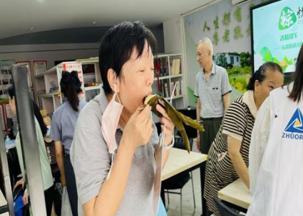 活动伊始,志愿者向居民们科普了端午节的一些小知识和故事。“‘端午’的‘端’字本义为‘正’,‘午’为‘中’。‘端午’(端五),‘中正’也,这天午时则为正中之正……端午节的节日食品,就是粽子。吃粽子的传说,和赛龙舟一样,都是为了纪念屈原。传说屈原于五月初五日投汨罗江后,被水中蛟龙所困,人们哀悯同情屈原,每到这一天的时候,就将五色丝的粽子投入江中,以驱赶蛟龙……”大家听得非常认真,纷纷表示对民俗传统节日有了更深的认识。