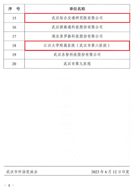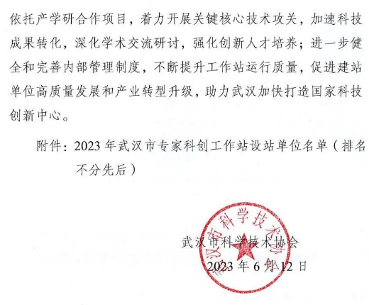 近日,印发了《市科协关于公布2023年武汉市专家科创工作站设站名单的通知》,由江岸区科协推荐、指导、申报的武汉综合研究院有限公司、江汉大学附属医院(武汉市第六医院)获批武汉市专家科创工作站。截止目前,江岸区共建有省、市院士工作站9家,市专家科创工作站5家,位居全市前列。