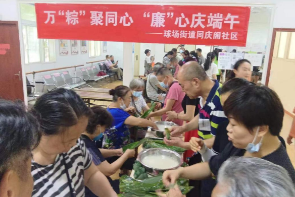 6月21日,球场街道同庆阁社区党群活动中心粽香四溢,廉味十足。几百个粽子,青色粽叶,白色糯米,代表着做人要清清白白;粽子有棱有角,告诫我们做事要有规有矩......小小粽子传达着“清廉做事、清白做人”的道理。
