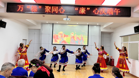 随着音乐声响起,文艺演出拉开了帷幕,演出结合中华传统文化和端午元素,采用了舞蹈、独唱、乐器演奏、等节目形式,给在场的居民带来了一场视听盛宴,共庆端午佳节的到来。