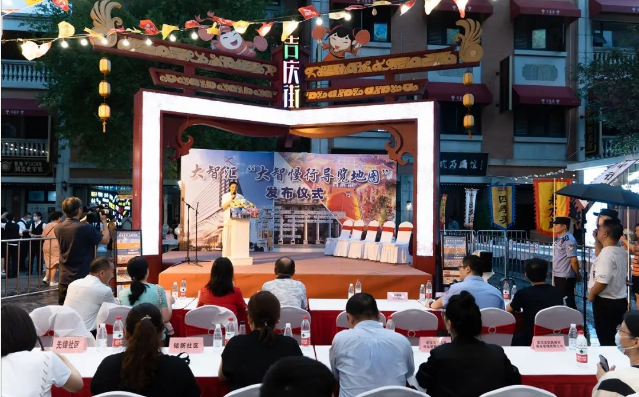 6月29日晚,大智街道联合辖区派出所在吉庆街大舞台举办了“大智慢行导览地图”发布活动。大智街道主任罗颂华女士介绍:大智街辖区作为近代史上汉口模范区的中心地带,曾发生过许多历史故事,在中国近代史上留下了浓墨重彩的一笔。辖区有一大批见证历史的优秀建筑成为了红色旅游资源。为赓续红色基因,彰显红色文化,重温历史忆初心,传承精神担使命,大智街道联合辖区派出所整理辖区旅游资源,共同设计了包含中组部旧址、中宣部旧址、中共中央工委旧址、向警予烈士就义处等一大批党早期在武汉活动地点的旅游线路,制作成“大智慢行导览地图”,选择在7.1前夕发布,为党的生日献礼。