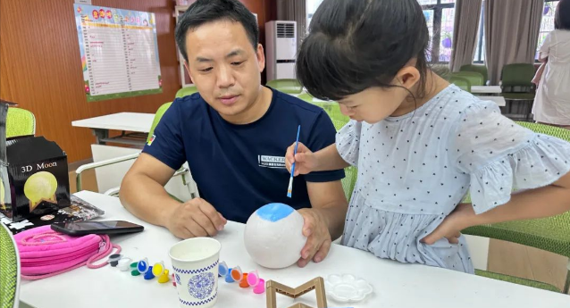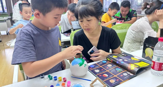 最激动人心的环节莫过于孩子们与妈妈们一起制作属于自己的宇宙模型。孩子们翻阅书本,参考电影中的场景,用色彩和创意展现了自己对宇宙的理解。在DIY的过程中,孩子们与妈妈们不仅加深了亲子间的感情,还培养了他们的动手能力和创造力。
