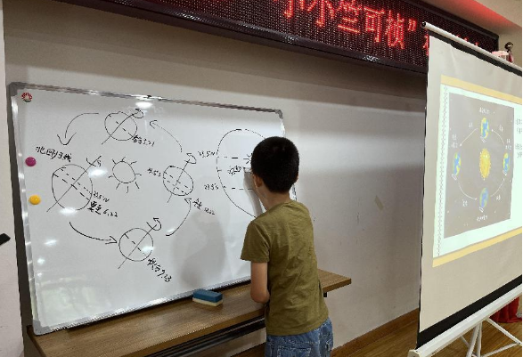 在上课过程中除了老师进行讲解之外,还让小朋友们进行朗诵、模拟播报、上台讲解等,让小朋友消化吸收知识的同时,锻炼自己的表达、动手能力。