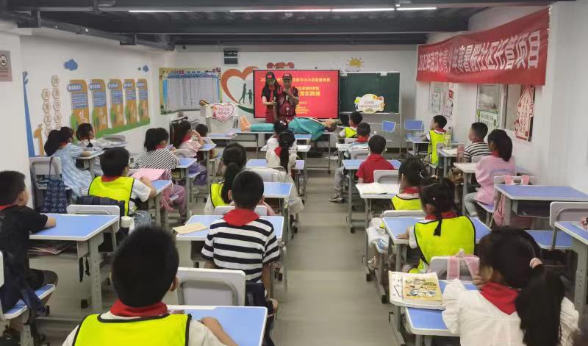 来自区宝捷应急救援队员邓月婵在社区青少年空间教学一体机大屏幕上给孩子们讲述急救相关知识及注意事项。她通过PPT展示,将常见的气道异物梗阻、溺水急救等一些专业知识技能浅显易懂,鲜活生动地传递给孩子们,孩子们个个竖起耳朵认真聆听。有的小孩还说:“我要学会,以防万一,保护自己。”