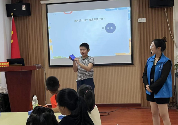 活动在交流展示中进入尾声。在老师的指导下,青少年们练习魔术表演话术和舞台动作,展示自己在课堂学到的魔术。在最后的分享交流中,青少年们提到在知晓科普原理的同时,还学会了要勇敢展示自己,在舞台上更加自信与从容,收获了满满的成就感。