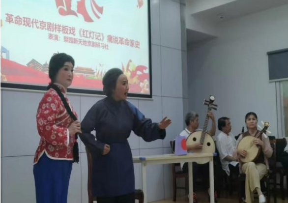 接着,梨园新天地京剧研习社的演员们登上了舞台,纷纷展现出精湛的表演技巧。他们激情四溢地演绎了京剧经典剧目《红灯记》和《沙家浜》,通过折子戏、唱段和舞蹈等形式,将京剧的艺术魅力展现得淋漓尽致。观众们被演员们的高亢激昂与精湛演技所吸引,掌声和喝彩声不绝于耳。