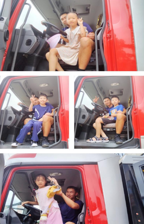 孩子们围着消防车这看看,那摸摸,充满了好奇。在消防员叔叔的帮助下,孩子们一个个的坐上了消防车,一探消防车的威武。