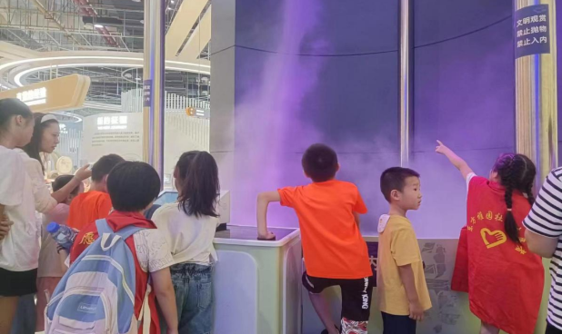 活动开始,科普老师带领青少年参观三楼的科学风暴、科技瑰宝、数理世界、超级工程、仰望星空、绿水青山、儿童科学乐园等展厅,让东方雅园社区的孩子们直观了解到科学知识的应用。科学风暴展厅主要展示科学带来的力量,以科学和技术推动人类社会发展、文明进步为主题。