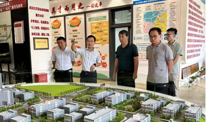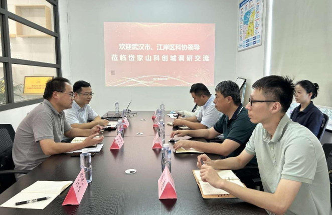 为助力武汉建设具有全国影响力的科技创新中心,做好科创湖北、科创武汉相关工作,2023年8月29日下午,武汉市科技创新服务中心负责人刘斌、江岸区科协副主席王意一行调研岱家山科创城,就科技企业成果转化、科技工作者服务开展研讨。
