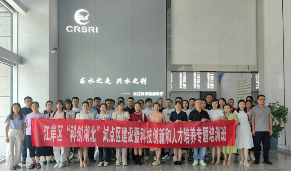 随后,学员们来到长江水利委员会长江科学院展示厅,展厅以“求水之事 兴水之利”为主题,再现了长科院70载峥嵘岁月的辉煌成就和持续发展的治水之路。在一楼展示厅,讲解员为学员详细介绍了长科院的历史沿革、人才培养、荣誉成果等,并通过弧屏展示长科院学科专业、科研条件、科研平台等优势,通过L幕裸眼3D技术深度展示长科院70年伟绩掠影。二楼则以长江流域图为轮廓背景,提取长科院13院所下属专业领域名称作为内容填充,突显出长科院凝聚力。