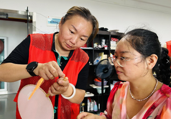 活动中,社区工作人员向在场的家庭介绍了团扇的文化背景及艺术特色,让大家感受到中华传统文化的别样魅力。随后大家纷纷拿起手中的材料跃跃欲试:在空白的扇面上摆放各种饰品进行造型设计,从里到外,深浅交错,从构图到色彩搭配,再到粘贴制作。大家在手工老师的指导下有条不紊地进行创作,不时地互相交流。现场气氛十分活跃。