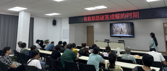 “原来毛毛虫蜕变成蝴蝶,要经历这样漫长的阶段...”,活动伊始,家长通过观看视频,直观了解到青春期孩子的变化是一个破茧成蝶的过程。活动中,杨倩老师首先以孩子关门为例,讲解青春期孩子的心理特征“难、乱、犟”,以及青春自我概念的形成,让家长学会理解孩子青春期的各种行为表现。随后,老师从自身经历出发,生动形象地围绕“接受、尊重、信任”三个方面传授妙招,教授家长们在青春期如何科学教育孩子,不断打通青春期堵塞的亲子沟通渠道,真正跨越房门,走进孩子的心门,为孩子健康成长保驾护航。
