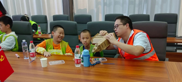 随后,项目部办公室工作人员给学生们分发了DIY画具和围裙,引导大家开始“小小设计师”沉浸式体验。学生们根据分发到手的模型,联系生活中见过的建筑物,将房屋、楼梯、院子、花坛等涂上理想的颜色。学生们看着手中的成品,都激动不已。“我以后也要自己建造真正的房子!”小小的心中开始种下理想的种子,只等慢慢生根发芽。