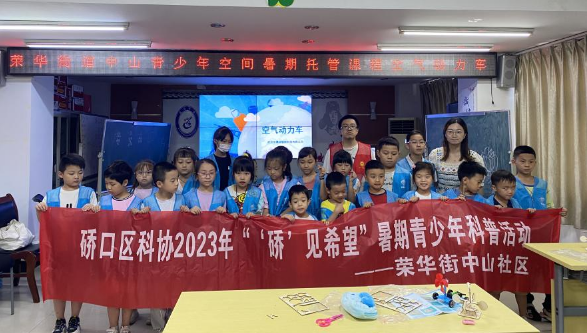 热爱科学,崇尚科学。为进一步推进社区科普宣传教育工作,激发辖区居民学习热情,丰富社区居民科普文化生活,8月1日下午,硚口区科协联合荣华街道中山社区,开展暑期青少年科普系列之“空气动力车”活动。