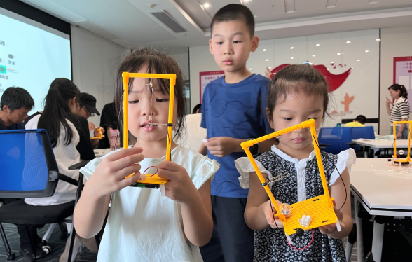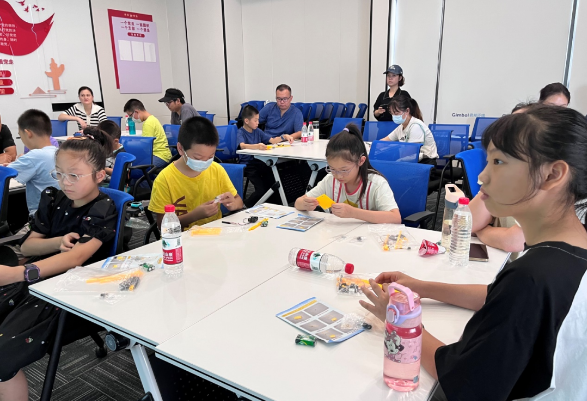 演练完成后,来到大家心心念念的动手环节——制作地震仪,老师先讲解了地震仪的制作步骤后,大家在家长的陪同下动手完成地震仪的制作。制作完成后,小朋友们还互相讨论为什么地震仪可以报警,真的非常热闹。