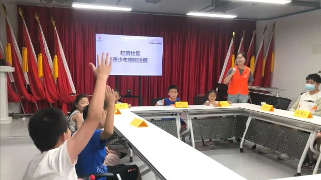 随着法槌敲响,一场“学生间因琐事发生争执导致的故意伤害案”在虹蔚社区科普园地“正式开庭”。