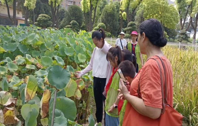 江南可采莲,莲叶何田田。活动伊始,科研院老师带领青少年们参观院内荷花。众多品种的荷花开出缤纷的色彩,水中的游鱼在荷叶下悠然地游动,凉爽的风拂过荷花,带来一阵清香。一幅明丽秀美而又生机勃勃的江南水乡画就这样呈现在青少年面前,青少年们在老师的讲解下,陶醉在夏日的清新与恬静里,享受着优美风景带来的愉悦。