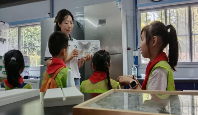 随后,引导青少年们参观室内昆虫博物馆,介绍昆虫的起源演化与其多样性的变化。