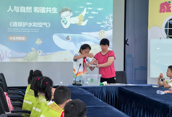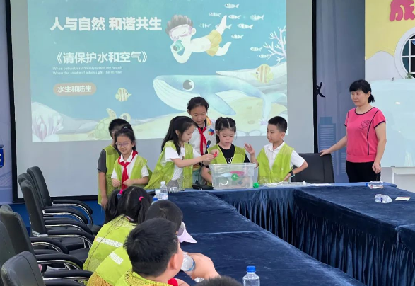 上午9点20分,小学员们来到武汉市少年儿童图书馆,党员志愿者陈聪老师热情接待了大家。按照楼层分布,陈老师引导小学员依次游览了大厅云上读书会展览、报刊阅览室、借阅室之后来到图书馆5楼多功能厅,向大家分享了科普绘本《长江,长江》,教大家开展了保护水资源的趣味实验——《水的重要性》,引导孩子们认识到水资源对生态和居住环境、空气质量的重要作用,对生命的重要性,倡导孩子们节约用水、科学用水。随着游览告一段落,本次一日游核心环节,同时也是武汉市少年儿童图书馆最受孩子们喜爱的——“千字屋”儿童想象力体验空间活动,开始啦。