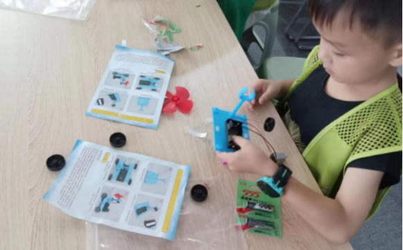 同学们积极思考,充分开动脑筋,在爸爸的帮助下,边思考边摸索如何让自己的“小汽车”跑的更快,然后不断改进自己的设备。