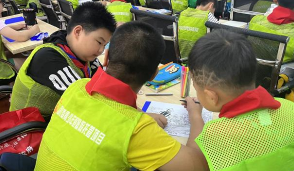 接着,老师带领孩子们进行了一个趣味小活动——“大禹治水”涂鸦。青少年们用五颜六色的画笔精心绘制、尽情发挥自己的想象力与创造力,一幅幅美丽的图画跃然纸上,小小的画纸变成了五彩缤纷的艺术品。