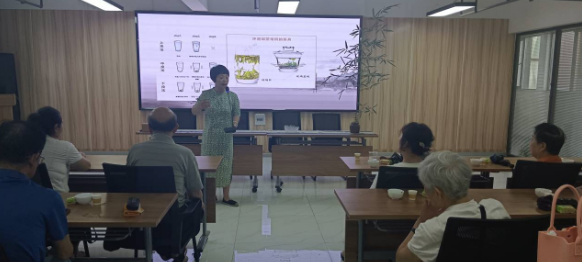 现场氛围浓厚,参与人员热情饱满,老人们各有自己的看法,老人们还针对自己的身体状况和生活情况与讲师互动交流,“我年轻时就喜欢饮茶,我喜欢喝黑茶,我喜欢喝普洱,我经常将茶泡到第二天还喝……”老人们各自分享了自己的饮茶习惯,茶艺师结合他近二十年的茶文化经验一一为老人解答疑问。她说:“喝茶是一件有助健康的事情,但千万不要喝浓茶,饭前饮茶,睡前不饮茶,用药时不饮茶,同时还要注意茶具的选择。”同时,还结合了相关案例详细分享了关于老人饮茶的细节与注意事项。