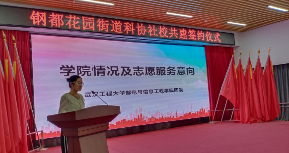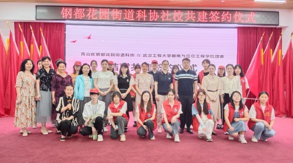 为让优质科技志愿服务资源更好助力基层新时代文明实践中心建设,动员青年大学生科技志愿者深入基层一线,参与基层社会治理,共同缔造幸福生活,5月30日上午,武汉市青山区钢都花园街道科协与武汉工程大学邮电与信息工程学院外语学院“共驻共建交流座谈会暨科技志愿服务结对仪式”在绿景苑社区举行。