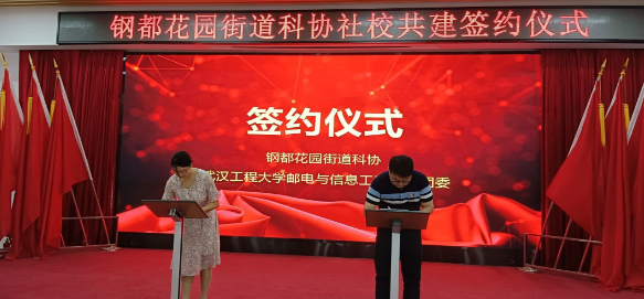 钢都花园街道科协秘书长张秀丽与武汉工程大学邮电与信息工程学院团委书记周恒,双方现场签订了“社校同行共筑共建”项目共建协议。此次大学生科技志愿服务校社共建积极推动了社区与高校的互联互动,让志愿青春力量延伸到基层社会治理的“神经末梢”。通过发挥高校科技志愿服务的资源优势,组织动员在校大学生利用社区社会实践活动平台,以“一老一小”为重点,广泛开展各类科技志愿服务活动,助力群众科学文明素养提升。